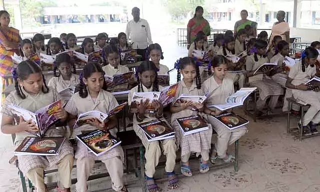 தமிழகத்தில் பள்ளிகளில் அரையாண்டு தேர்வு கடந்த டிசம்பர் மாதம் 19-ந் தேதி தொடங்கி 23-ந் தேதி வரை நடந்தது. அதன்பின் விடுமுறை விடப்பட்டது. இந்த நிலையில் விடுமுறை முடிந்த பின் இன்று பள்ளிகள் திறக்கப்பட்டது. புதுக்கோட்டை மாவட்டத்தில் இன்று பள்ளிகள் திறக்கப்பட்டதில் மாணவ-மாணவிகள் ஆர்வமுடன் பள்ளிக்கு வந்தனர். அரசு பள்ளிகளில் 1 முதல் 5-ம் வகுப்பு ஆசிரியர்களுக்கு எண்ணும் எழுத்தும் பயிற்சி நடைபெறுவதால் அந்த வகுப்புகளை சேர்ந்த மாணவர்களுக்கு மட்டும் வருகிற 5-ந் தேதி மீண்டும் வகுப்புகள் தொடங்குகிறது. 6 முதல் 12-ம் வகுப்பு மாணவ-மாணவிகளுக்கு பள்ளிகள் திறக்கப்பட்டன. இதில் விடுமுறைக்கு பின் புத்தாண்டில் முதன்முதலாக பள்ளிக்கு வந்த மாணவ-மாணவிகளை ஆசிரியர்கள் இனிப்பு மற்றும் பூக்கள் வழங்கியும் அன்போடு வரவேற்றனர். மேலும் மூன்றாம் பருவத்தேர்வுக்கான அரசின் விலையில்லா பாடப்புத்தகங்கள், பொருட்கள் வழங்கப்பட்டன. பாடப்புத்தகங்களை மாணவ-மாணவிகள் ஆர்வமுடன் வாங்கி படித்தனர்.