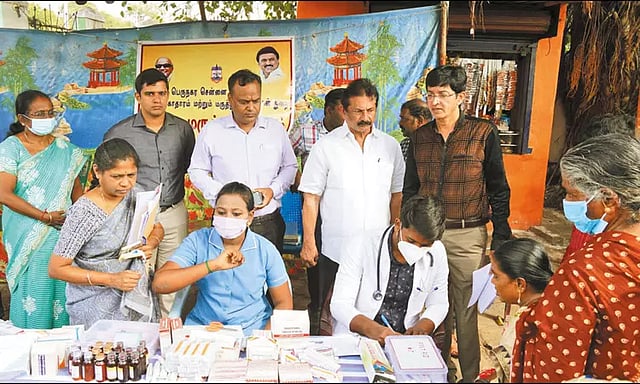 சென்னை ராயபுரம் அன்னை சத்யா நகரில் நடைபெற்ற மழைக்கால சிறப்பு மருத்துவ முகாமை மாநகராட்சி கமிஷனர் டாக்டர் ஜெ.ராதாகிருஷ்ணன் நேற்று ஆய்வு செய்தார். அப்போது, பொதுமக்களுக்கு அளிக்கப்படும் சிகிச்சைகள் குறித்து டாக்டர்களிடம் கேட்டறிந்தார். பின்னர், அப்பகுதி மக்களுடன் கொசு தடுப்பு நடவடிக்கைகள் குறித்து கலந்துரையாடி விழிப்புணர்வு ஏற்படுத்தினார்.