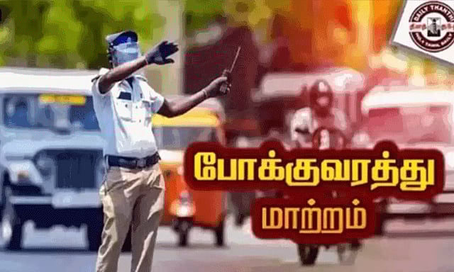 இதுதொடர்பாக, போக்குவரத்து போலீஸார் வெளியிட்ட செய்திக் குறிப்பு பின்வருமாறு;