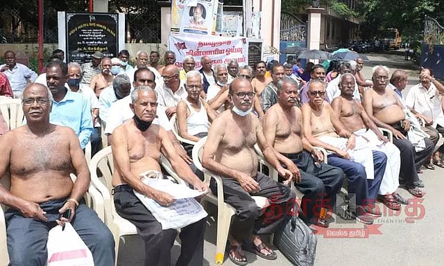 கோவையில் மருத்துவ காப்பீடு திட்டத்தை அரசே ஏற்று நடத்தக் கோரி ஓய்வு பெற்ற மின்வாரிய ஊழியர்கள் அரை நிர்வாண போராட்டம் நடத்தினர்.