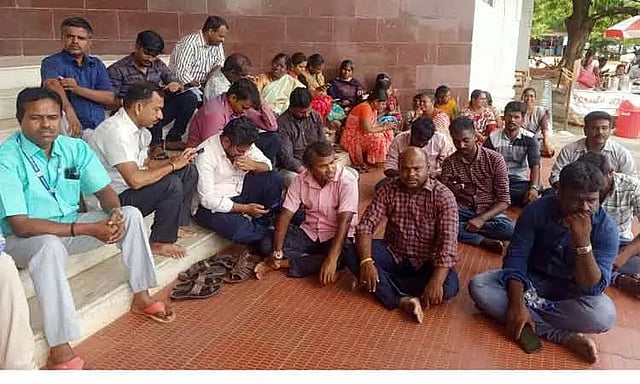 தேனி மாவட்ட கலெக்டர் அலுவலக வளாகத்தில் தமிழ்நாடு வருவாய்த்துறை அலுவலர் சங்கம் சார்பில் நேற்று தர்ணா போராட்டம் நடந்தது. கள்ளக்குறிச்சி தனி தாசில்தார் மனோஜ்முனியனை எந்த விசாரணையும் இன்றி பணி இடைநீக்கம் செய்ததை கண்டித்தும், அந்த உத்தரவை ரத்து செய்யக்கோரியும் இந்த தர்ணா போராட்டம் நடந்தது. போராட்டத்துக்கு மாவட்ட பொருளாளர் வடிவேல் தலைமை தாங்கினார். இதில் வருவாய்த்துறை அலுவலர்கள் பலர் கலந்துகொண்டனர். காலை 11 மணியளவில் தொடங்கிய போராட்டம் இரவு வரை நீடித்தது. அதுபோல், பெரியகுளம், உத்தமபாளையம் ஆர்.டி.ஓ. அலுவலகங்கள், தேனி, ஆண்டிப்பட்டி, போடி, பெரியகுளம், உத்தமபாளையம் தாலுகா அலுவலகங்கள் முன்பும் வருவாய்த்துறை அலுவலர் சங்கத்தினர் நேற்று தர்ணா போராட்டத்தில் ஈடுபட்டனர். இதனால், வருவாய்த்துறை அலுவலகங்களில் பணிகள் பாதிக்கப்பட்டன.