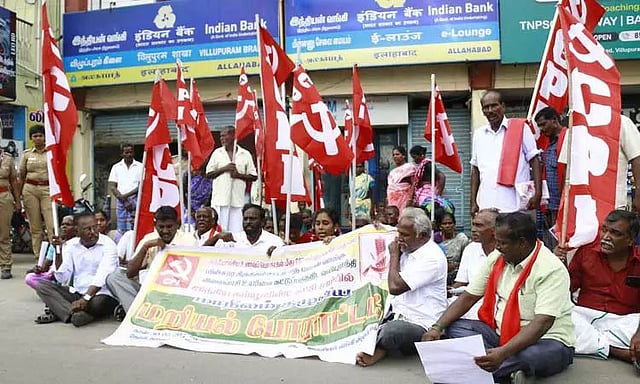 அந்த வகையில் விழுப்புரம் நேருஜி சாலையில் உள்ள தேசிய மயமாக்கப்பட்ட வங்கி முன்பு நடந்த சாலை மறியல் போராட்டத்திற்கு மாவட்ட செயலாளர் சவுரிராஜன் தலைமை தாங்கினார். ஒன்றிய செயலாளர்கள் ஜெயச்சந்திரன், ஏழுமலை, வட்ட செயலாளர் நிதானம் ஆகியோர் முன்னிலை வகித்தனர். இதில் மாவட்டக்குழு உறுப்பினர்கள் செல்வம், திலகவதி, பிரபாகரன், ராமநாதன், மணி உள்பட பலர் கலந்து கொண்டு கோரிக்கைகளை வலியுறுத்தி கோஷம் எழுப்பினர்.