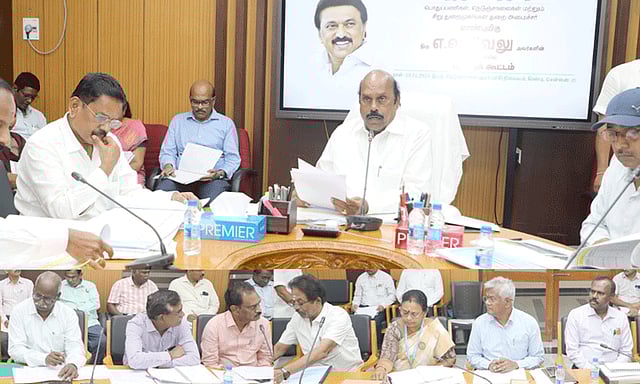 "சென்னை, கிண்டி நெடுஞ்சாலை ஆராய்ச்சி நிலைய வளாகத்தில் உள்ள கூட்டரங்கில், நெடுஞ்சாலைத்துறை அலகுகளின் மூலம் சுமார் ரூ.16,202 கோடி மதிப்பீட்டில் தமிழ்நாட்டில் பல்வேறு பகுதிகளில் நடைபெற்று வரும் 74 சாலை பணிகளின் முன்னேற்றம் குறித்தும், பணிகளின்போது ஏற்படும் இடர்பாடுகள் குறித்தும், இன்று (19.11.2024) அமைச்சர் எ.வ.வேலு ஆய்வு மேற்கொண்டார்.