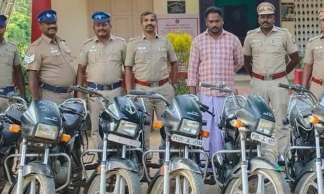 இதையடுத்து தீபக்ராஜை போலீசார் கைது செய்து அவரிடமிருந்து 9 மோட்டார் சைக்கிள்களை பறிமுதல் செய்தனர்.