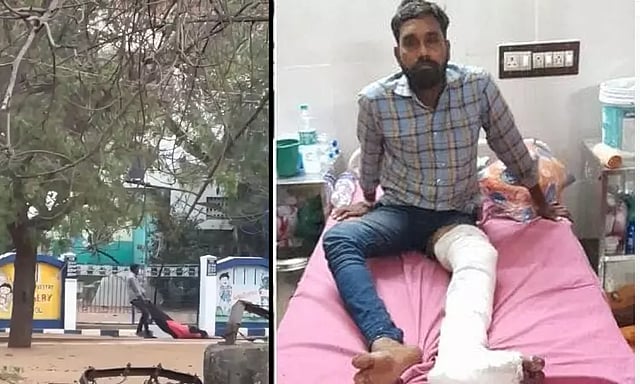 இதில் அவரது கால் உடைந்தது. உடனடியாக அவரை மீட்ட போலீசார், திருச்சி அரசு மருத்துவமனையில் அனுமதித்துள்ளனர்.