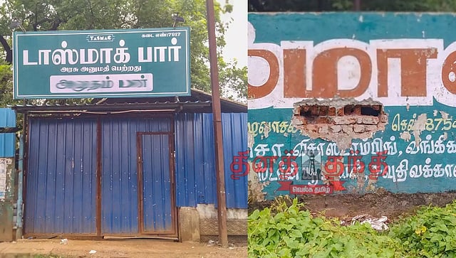 மேலும் சில அடி நீளத்துக்கு சுவரை மர்ம நபர்கள் உடைத்துள்ளனர். முன்பக்கம் கண்காணிப்பு கேமரா பொருத்தப்பட்டுள்ளதால் பின்புறமாக வந்து சுவரை உடைத்து உள்ளே புகுந்து பணம் மற்றும் மது பாட்டில்களை கொள்ளை அடிக்க முயன்றது தெரிய வந்தது. இது குறித்து போலீசார் தொடர்ந்து விசாரணை நடத்தி வருகின்றனர்.
