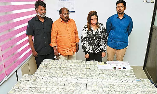 இந்த வழக்கில் சிவகங்கை மாவட்டம் காரைக்குடியைச்சேர்ந்த ராஜசேகர் (வயது 65), சென்னை போரூர், ஆலப்பாக்கத்தைச் சேர்ந்த ரஜிதா (36), கே.கே.நகரைச் சேர்ந்த ராமு (36), வளசரவாக்கத்தைச் சேர்ந்த தசரதன் (30) ஆகியோர் அதிரடியாக கைது செய்யப்பட்டனர். அவர்களிடம் இருந்து ரூ.1 கோடியே 1 லட்சம் ரொக்கப்பணம், 2 கார் மற்றும் போலியான ஆவணங்கள் போன்றவை பறிமுதல் செய்யப்பட்டது.