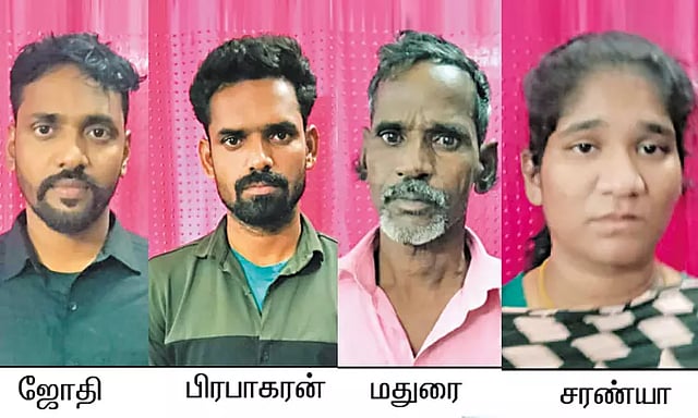 திருவள்ளூர் மாவட்டம் செங்குன்றம் அருகே ஜோதி பதுங்கி இருப்பதாக போலீசாருக்கு தகவல் கிடைத்தது. தகவலை அடுத்து தனிப்படை போலீசார் அங்கு விரைந்து சென்று ஜோதி மற்றும் ஜோதியின் தந்தை மதுரை, மனைவி சரண்யா மற்றும் தம்பி பிரபாகர் ஆகிய 4 பேரையும் கையும் களவுமாக கைது செய்தனர்.