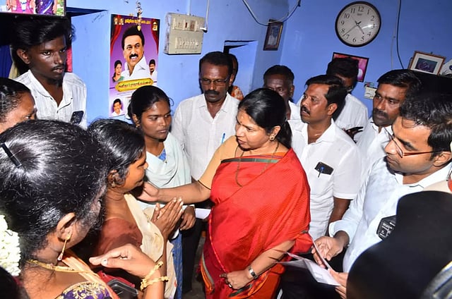 உடன்குடியில் தற்கொலை செய்த பேரூராட்சி பணியாளர் குடும்பத்திற்கு ரூ.5 லட்சம் நிதியுதவியை கனிமொழி எம்.பி. வழங்கினார்.