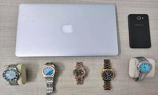 இது குறித்த புகாரின்பேரில் குன்றத்தூர் போலீசார், அந்த பகுதியில் உள்ள கண்காணிப்பு கேமராவில் பதிவான காட்சிகளை வைத்து சோழிங்கநல்லூரை சேர்ந்த ராபர்ட்வோர்டு (26) என்பரை கைது செய்தனர். ஆங்கிலோ இந்தியரான இவர், ஆன்லைன் மூலம் அந்த அடுக்குமாடி குடியிருப்பில் வசித்து வந்த ஒருவரை மோட்டார் சைக்கிளில் அழைத்து வந்தபோது(பைக் டாக்சி) ராஜேஷின் வீடு பூட்டி இருப்பதை கண்டார். ஜன்னல் அருகே வீட்டின் மற்றொரு சாவி இருப்பதை பார்த்த அவர், கதவை திறந்து உள்ளே சென்று திருடியதும் தெரிந்தது. திருடப்பட்ட கைக்கடிகாரங்களின் மதிப்பு தெரியாததால் அவற்றை விற்காமல் வீட்டிலேயே வைத்திருந்ததும் தெரியவந்தது. அவரிடம் இருந்து 5 கைக்கடிகாரங்கள், லேப்டாப், செல்போன் ஆகியவற்றை போலீசார் பறிமுதல் செய்தனர்.