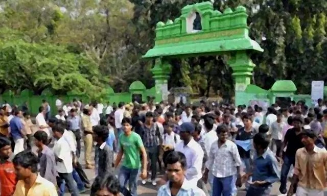 ஒரு கட்டத்தில் மாணவர்கள் இரு குழுவாக பிரிந்து பயங்கர மோதலில் ஈடுபட்டனர். சரமாரியாக கற்கள் வீசப்பட்டன. இதில் அப்பாவி மாணவர்கள் சிதறி ஓடினார்கள். அங்கு ஒரே போர்க்களமாக காணப்பட்டது. கல்லூரிக்குள் நடந்த விழா என்பதால் பெரிய அளவில் போலீஸ் பாதுகாப்பு போடப்படவில்லை.