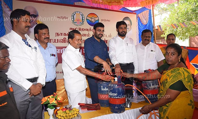 நாகையில் ரேஷன் கடைகள் மூலம் 5 கிலோ எடைகொண்ட கியாஸ் சிலிண்டர் விற்பனை தொடக்க விழா நடைபெற்றது. விழாவுக்கு மாவட்ட கலெக்டர் அருண் தம்புராஜ் தலைமை தாங்கினார். எம்.எல்.ஏக்கள் நாகைமாலி, முகமது ஷாநவாஸ், நகரமன்றத் தலைவர் மாரிமுத்து ஆகியோர் முன்னிலை வகித்தனர். கூட்டுறவுசங்கங்களின் மண்டல இணைப்பதிவாளர் அருளரசு வரவேற்றார்.