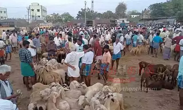 புதுக்கோட்டை சந்தைப்பேட்டை வாரச்சந்தையிலும் சுமார் ரூ.2 கோடிக்கு ஆடுகள் விற்பனையாகி உள்ளது. கடலூர் மாவட்டம் வேப்பூரில் 1500-க்கும் மேற்பட்டோர் பங்கேற்ற நிலையில் சுமார் ரூ.4 கோடிக்கு ஆடுகள் விற்பனையாகி உள்ளது.