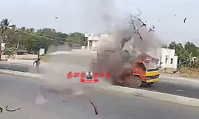 அப்பேது வெள்ளைக்கோடுகள் வரைவதற்கு பயன்படுத்தப்படும் இயந்திரத்திற்கு பயன்படுத்த லாரியில் வைத்திருந்த சிலிண்டர் திடீரென தீ பிடித்து, இதில் லாரியின் ஒரு பக்கம் எரிந்தது. இதனால், பயந்து போன தொழிலாளர்கள் தண்ணீரை ஊற்றி தீயை அணைக்க முற்பட்டபோது, சிலிண்டர் பயங்கர சத்தத்துடன் வெடித்து சிதறியது. இந்த விபத்தில் நல்வாய்ப்பாக தெழிலாளர்கள் அனைவரும் உயிர் தப்பினர். அப்பேது சாலையில் வாகனம் எதுவும் செல்லாததால் பெரும் அசம்பாவிதம் தவிர்க்கப்பட்டது.
