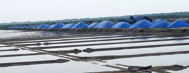 ராமநாதபுரம் மாவட்டம் தேவிபட்டினம், சித்தார் கோட்டை, புதுவலசை, தேர்போகி, பழைய தேர் போகி, பனைக்குளம், ஆற்றங்கரை உள்ளிட்ட பகுதிகளில் நேற்று முன்தினம் இரவு முழுவதும் விடிய விடிய பலத்த மழை பெய்தது. தொடர் மழையால் கோப்பேரி மடம் பகுதியில் உள்ள பல ஏக்கர் பரப்பளவில் இருந்த உப்பள பாத்திகள் முழுவதும் மழை வெள்ளத்தில் மூழ்கின. மழை நீரில் உப்பு கரைந்து வீணாவதை தடுக்க தார்ப்பாய் கொண்டு பாதுகாப்பாக மூடி வைக்கப்பட்டு உள்ளது. பருவமழை சீசன் தொடங்கி விட்டதால் இன்னும் 3 மாதத்திற்கு கோப்பேரி மடம், திருப்புல்லாணி, ஆனைகுடி, வாலிநோக்கம், உள்ளிட்ட மாவட்டம் முழுவதும் உள்ள ஊர்களில் உப்பு உற்பத்தி நிறுத்தப்பட்டு உள்ளது.