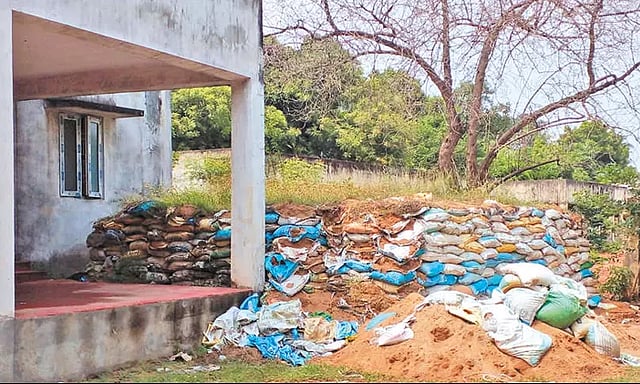 தற்போது இந்த மணல் மூட்டைகள் சேதம் அடைந்து மணல் குவியலாக மாறி மணலின் மீது செடி, கொடிகள் முளைத்து உள்ளது. சில தினங்களில் வடகிழக்கு பருவமழை தொடங்கும் நிலையில், சிதிலமடைந்த மணல் மூட்டைகளை புதிய சாக்கு பைகள் கொண்டு தயார் நிலையில் வைக்கப்படமால் உள்ளது.
