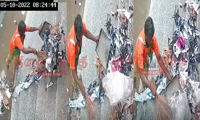 ஆனால் அவர் 500 ரூபாய் கேட்டு தொந்தரவு செய்யவே, இருவருக்கும் வாக்குவாதம் ஏற்பட்டுள்ளது. இந்நிலையில் கடந்த 5-ஆம் தேதி தூய்மைப் பணியாளர் ஒருவர் கடை அருகே இருந்த குப்பையை எடுத்து, கடை முன்பு போடும் சிசிடிவி காட்சிகள் தற்போது சமூக வலைதளங்களில் வைரலாகி வருகிறது.