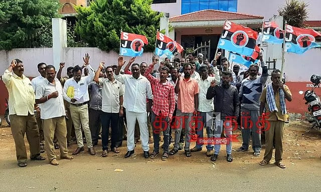 ஆர்ப்பாட்டத்துக்கு தூய்மை பணியாளர்கள் சங்க தலைவர் சேகர் தலைமை தாங்கினார். மாவட்ட தலைவர் பழனிச்சாமி, நிர்வாகிகள் சந்திரன், பிரதீப் குமார், அரசு ஊழியர் சங்க வட்ட செயலாளர் சிவா, நிர்வாகி பால்துரை ஆகியோர் கோரிக்கைகளை விளக்கி பேசினர். ஆர்ப்பாட்டத்தில் அரசு பணியிடங்களை தனியாருக்கு ஒப்படைக்க கூடாது. அரசாணை எண். 152-ஐ ரத்து செய்ய வேண்டும் என வலியுறுத்தி கோஷம் எழுப்பப்பட்டது.