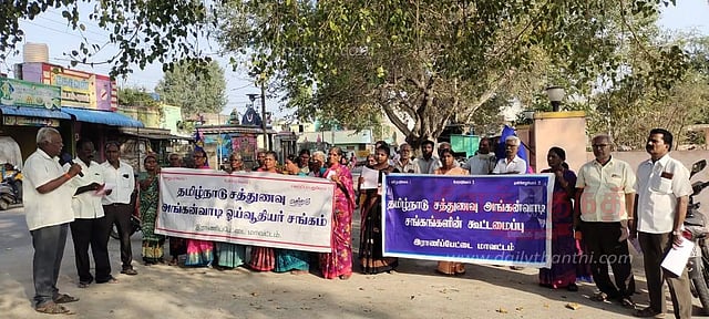 சத்துணவு, அங்கன்வாடி திட்டங்களில் பணிபுரிபவர்களுக்கு முறையான கால முறை ஊதியம் வழங்குவதற்கு ஏதுவாக அனைத்து அரசு துறைகளிலும் உள்ள நிரந்தர காலமுறை ஊதியத்திலான காலி பணியிடங்களில் 50 சதவீத பணியிடங்களை ஒதுக்கி அதில் தகுதி உள்ள சத்துணவு, அங்கன்வாடி ஊழியர்களை பணிமூப்பு அடிப்படையில் பதவி வழங்க வேண்டும். காலை சிற்றுண்டி திட்டத்தை தனியாரிடம் ஒப்படைப்பதை கைவிட்டு சத்துணவு திட்டத்தில் இணைத்திட வேண்டும் என்பன உள்பட பல்வேறு கோரிக்கைகளை வலியுறுத்தி ஆர்ப்பாட்டம் நடந்தது. முடிவில் கணேசன் நன்றி கூறினார்.