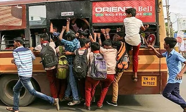 இதனை கண்டக்டர் டேவிட் கண்டித்ததுடன், மாணவர்களை பஸ்சின் உள்ளே வருமாறு அழைத்தார். இதனை கண்டுகொள்ளாத மாணவர்கள், தொடர்ந்து பஸ்சின் படிக்கட்டில் தொங்கியபடி வந்தனர்.