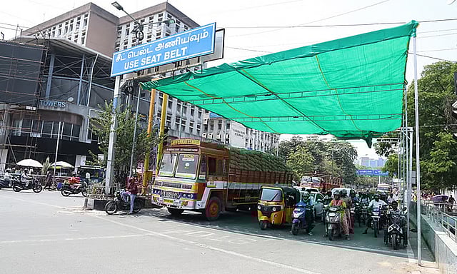 சென்னையில் பகல் நேரத்தில் வெயிலின் தாக்கம் அதிகரித்து காணப்படுகிறது. வெயில் தாக்கத்தால் வாகன ஓட்டிகள் உடல் சோர்வை சந்தித்து வருகிறார்கள். இந்த நிலையில், கடந்த 2024-ம் ஆண்டு வாகன ஓட்டிகளின் நலனை கருத்தில் கொண்டு சென்னை மாநகராட்சி சார்பில் போக்குவரத்து சிக்னல்களில் பசுமை பந்தல்கள் அமைக்கப்பட்டது. இதற்கு வாகன ஒட்டிகள் மத்தியில் வரவேற்பு கிடைத்தது.