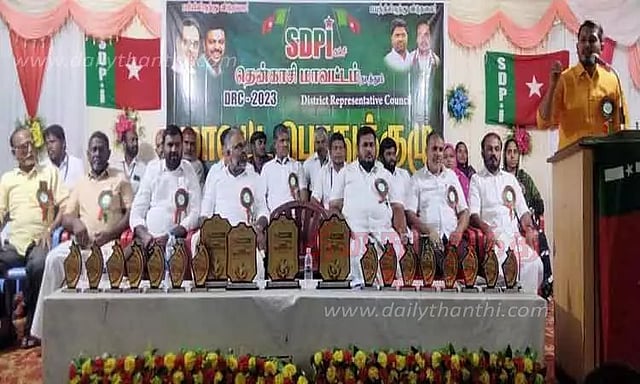சங்கரன்கோவிலில் எஸ்.டி.பி.ஐ. கட்சியின் தென்காசி மாவட்ட பொதுக்குழு கூட்டம் நடைபெற்றது. கூட்டத்திற்கு மாவட்ட தலைவர் யாசர்கான் தலைமை தாங்கினார். மாவட்ட பொதுச்செயலாளார் சிக்கந்தர், மாவட்ட துணைத்தலைவர் செய்யது மஹ்மூத், மாவட்ட அமைப்பு பொதுச்செயலாளர் திவான் ஒலி, மாவட்ட செயலாளர் நூர் முஹம்மது, மாவட்ட பொருளாளர் கல்வத் கனி, வேளாண் அணி மாவட்ட செயலாளர் முஹம்மது காசிம், மாவட்ட செயற்குழு உறுப்பினர்கள் முஹம்மது கனி, முஹம்மது அலி, முத்துமுஹம்மது, சமூக ஊடக அணி மாவட்ட தலைவர் ஹக்கீம், எஸ்.டி.டி.யு. தொழிற்சங்க மாவட்ட செயலாளர் அசன் கனி, மாவட்ட பொருளாளர் ஹக்கீம் ஆகியோர் முன்னிலை வைத்தனர். மாநில பொதுச்செயலாளர்கள் நிஜாம் முஹைதீன், அஹமது நவ்வி, வர்த்தக அணி மாநில பொதுச்செயலாளர் ஜாபர் அலி உஸ்மானி, நெல்லை மண்டல தலைவர் சுல்பிகர் அலி ஆகியோர் கலந்து கொண்டு சிறப்புரையாற்றினர்.