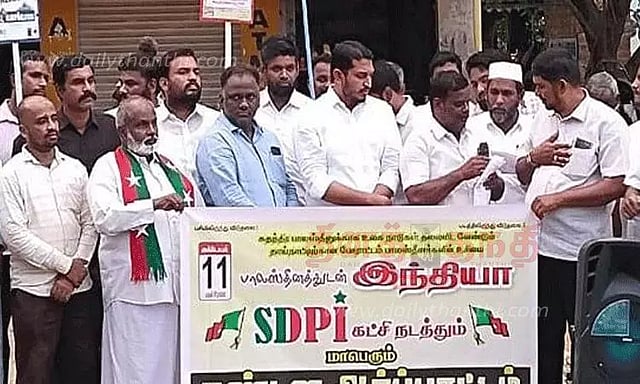 பாலஸ்தீனில் இஸ்ரேல் நடத்தி வரும் கொடூர தாக்குதல் மற்றும் ஆக்கிரமிப்பை கண்டித்து பத்தமடையில் எஸ்.டி.பி.ஐ. கட்சி சார்பில் ஆர்ப்பாட்டம் நடந்தது. நெல்லை புறநகர் மாவட்ட தலைவர் பீர் மஸ்தான் தலைமை தாங்கினார். மாநில பொதுச்செயலாளர் அகமது நவவி, மாநகர் மாவட்ட தலைவர் சாகுல்ஹமீது உஸ்மானி, புறநகர் மாவட்ட துணைத்தலைவர் முல்லை மஜித், மாநகர் மாவட்ட துணைத்தலைவர் ஹயாத் முகம்மது, மாவட்ட பொதுச்செயலாளர்கள் களந்தை மீராசா, சிராஜ், பொருளாளர் இளையாராஜா, வர்த்தகர் அணி மாவட்ட தலைவர் அம்பை ஜலில், பத்தமடை நகர தலைவர் ஷெரிப் உள்ளிட்டோர் கலந்து கொண்டனர். ஆர்ப்பாட்டத்தில் ஈடுபட்ட 40 பேர் கைது செய்யப்பட்டனர்.