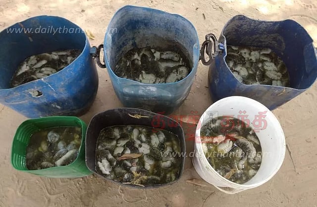 இலங்கைக்கு கடத்த பதுக்கிய 85 கிலோ கடல் அட்டைகள் பறிமுதல் செய்யப்பட்டன.