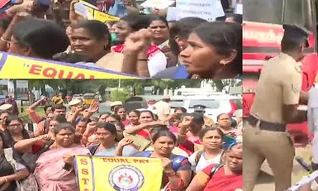 இந்த நிலையில், சம வேலைக்கு சம ஊதியம் வழங்க வலியுறுத்தி சென்னை நுங்கம்பாக்கத்தில் உள்ள பள்ளிக்கல்வித்துறை அலுவலகத்தை முற்றுகையிட்டு போராட்டத்தில் ஈடுபட முயன்ற இடைநிலை ஆசிரியர்கள் கைது செய்யப்பட்டுள்ளனர்.
