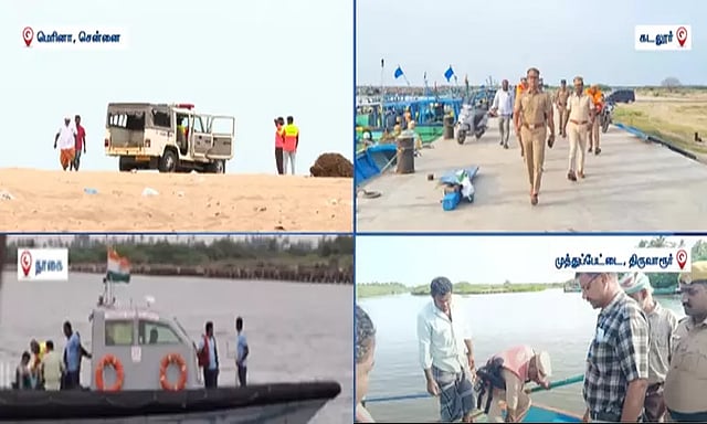 திருவாரூர் மாவட்டத்தில், திருத்துறைப்பூண்டி அருகே முத்துப்பேட்டை கடலோர பகுதியில் கடலோர பாதுகாப்பு குழும போலீசார் 'சாகர் கவாச்' ஒத்திகையில் ஈடுபட்டனர். அப்போது அதிகாரிகள் மீனவர்களுக்கு பாதுகாப்பு அறிவுறுத்தல்களை வழங்கினர்.