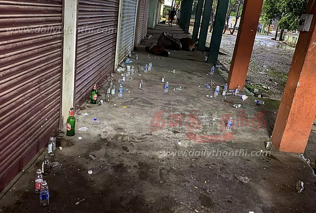 தினமும் இதே நிலை தான் நீடிக்கிறது. காலை நேரத்தில் பாட்டில்களை பொருக்க வருபவர்கள் காலி மதுபான பாட்டில்கள், காலியாக கிடக்கும் வாட்டர் பாட்டில்களை எடுத்துச்சென்று விடுகின்றனர். மீதமுள்ளவற்றை அப்படியே போட்டுவிட்டு சென்று விடுகின்றனர். துப்புரவு பணியாளர்கள் தான் சுத்தம் செய்யும் நிலை ஏற்படுகிறது.