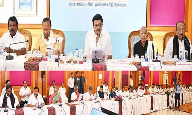 ஆனால், வாக்காளர் பட்டியல் சிறப்பு தீவிர திருத்தம் என்ற பெயரில் தமிழக மக்களின் வாக்குரிமையை பறிக்கும் சதி திட்டமிது என கூறி இதற்கு எதிராக போராடிட, முதல்-அமைச்சர் மு.க. ஸ்டாலின் தலைமையில் நவம்பர் 2-ந்தேதி அனைத்து கட்சி கூட்டம் நடைபெறும் என்று தி.மு.க. கூட்டணி கட்சிகள் அறிவித்தன. இதன்படி, தமிழகத்தில் உள்ள 60 கட்சி தலைவர்களுக்கும் அழைப்பு கடிதம் அனுப்பப்பட்டது.