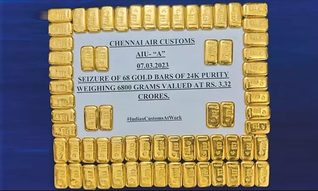 சென்னை மீனம்பாக்கம் பன்னாட்டு விமான நிலையத்திற்கு வெளிநாடுகளில் இருந்து வரும் விமானங்களில் பெரும் அளவில் தங்கம் கடத்தி வரப்படுவதாக சுங்க இலாகா அதிகாரிகளுக்கு தகவல் கிடைத்தது.