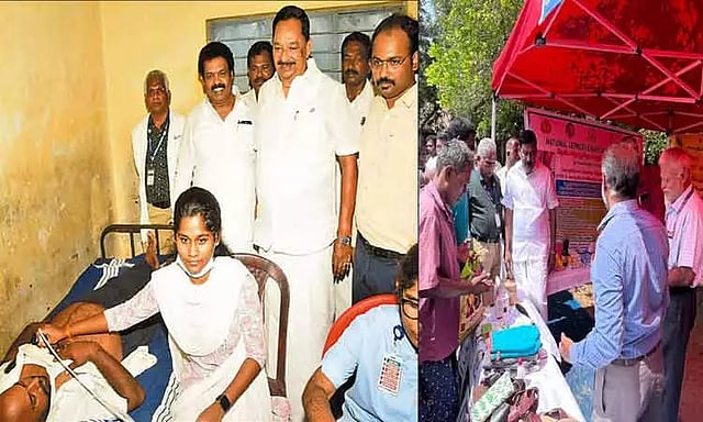 கலைஞர் நூற்றாண்டு விழாவையொட்டி தமிழகமெங்கும் 100 பன்னோக்கு சிறப்பு மருத்துவ முகாம் நடைபெறும் என முதல்-அமைச்சர் மு.க.ஸ்டாலின் அறிவித்திருந்தார். இந்நிலையில் திருவள்ளூர் மாவட்டம் திருவாலங்காடு அரசு மேல்நிலைப் பள்ளியில் மருத்துவம் மற்றும் மக்கள் நலத்துறை சார்பில் பன்னோக்கு சிறப்பு மருத்துவ முகாம் மற்றும் காப்பீட்டுத் திட்ட பயனாளிகள் பதிவுசெய்யும் முகாம் நடைபெற்றது. இந்த மருத்துவ முகாமில் பொது மக்களுக்கு வழங்கப்படும் இலவச மருத்துவ பரிசோதனை மற்றும் மருத்துவ சிகிச்சைகளை கைத்தறி மற்றும் துணிநூல் துறை அமைச்சர் ஆர்.காந்தி நேரில் பார்வையிட்டு ஆய்வு செய்தார். இதில் மாவட்ட கலெக்டர் டாக்டர் ஆல்பி ஜான் வர்கீஸ் முன்னிலை வகித்தார். முகாமில் 600-க்கும் மேற்பட்டோர் பொதுமக்களுக்கு சிகிச்சைகள்அளிக்கப்பட்டு சுயவிவரம் கொண்ட அடையாள அட்டைகள் வழங்கப்பட்டன. இந்த நிகழ்ச்சியில் திருவள்ளூர் எம்.எல்.ஏ. வி.ஜி.ராஜேந்திரன், திருத்தணி எம்.எல்.ஏ. எஸ்.சந்திரன், கும்மிடிப்பூண்டி எம்.எல்.ஏ. டி.ஜெ.கோவிந்தராஜன், இணை இயக்குநர் (மருத்துவம்) சேகர், துணை இயக்குநர் (சுகாதாரப் பணிகள்) ஜவஹர்லால், திருவள்ளூர் மருத்துவக் கல்லூரி முதல்வர் திலகவதி, மருத்துவர்கள், நர்சுகள்கள் உள்பட பலர் கலந்து கொண்டனர்.