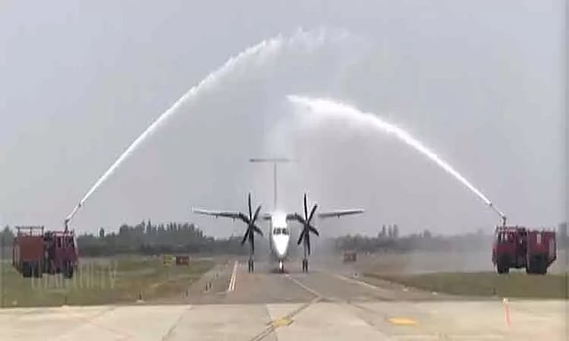 அதன்படி சென்னையில் இருந்து தூத்துக்குடி விமான நிலையத்திற்கு வந்த ஸ்பைஸ்ஜெட் விமானத்தை தண்ணீர் பீய்ச்சி அடித்து விமான நிலைய நிர்வாகத்தினர் உற்சாகமாக வரவேற்றனர்.