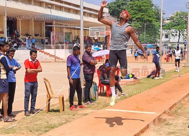 இதேபோல குண்டு எறிதல் மற்றும் தட்டு எறிதல் போட்டிகளில் டி.ஜி.வைஸ்னவ் கல்லூரி மாணவர் சிதீஸ்வரன் முதல் இடத்தையும், உயரம் தாண்டுதலில் ஸ்காட் கிறிஸ்தவ கல்லூரி மாணவர் அபினேஷ், நீளம் தாண்டுதலில் இந்து கல்லூரி மாணவர் அசதுல்லா மஜாகித் ஆகியோரும் முதல் பரிசை வென்றனர். நாளை (திங்கட்கிழமை) பொதுப்பிரிவினருக்கான போட்டிகள் நடத்தப்படுகிறது.