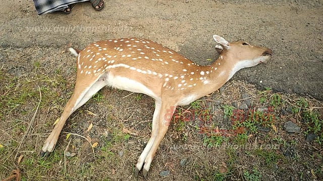 மயிலாடுதுறை மாவட்டம் கொள்ளிடம் மற்றும் அதன் சுற்றுவட்டார பகுதிகளில் பல்வேறு இடங்களில் மான்கள் கூட்டம் கூட்டமாக வசித்து வருகின்றன. ஓலையாம்புத்தூர் ஊராட்சியில் செம்பியன்வேலன்குடி பகுதியில் உள்ள காட்டிலும் மான்கள் அதிக எண்ணிக்கையில் உள்ளன. இந்த நிலையில் செம்பியன் வேலன்குடி பொறை வாய்க்கால் அருகே இரண்டரை அடி உயரம், 2 வயதுடைய பெண் புள்ளிமான் ஒன்று முகத்தில் லேசான காயங்களுடன் இறந்து கிடந்தது. தகவல் அறிந்த சீர்காழி வனச்சரகர் ஜோசப்டேனியல் தலைமையில் வனத்துறையினர் சம்பவ இடத்திற்கு விரைந்து சென்று விசாரணை நடத்தி, இறந்து கிடந்த புள்ளி மானின் உடலை கைப்பற்றி பிரேத பரிசோதனைக்காக சீர்காழி கால்நடை ஆஸ்பத்திரிக்கு அனுப்பி வைத்தனர். இந்த புள்ளிமான் நாய் துரத்தி முள்வேலியில் மோதி அதிர்ச்சியில் இறந்திருக்கலாம் என கூறப்பட்டாலும், பிரேத பரிசோதனையின் முடிவிலேயே மான் இறப்பிற்கான முழுமையான காரணம் தெரிய வரும் என வனத்துறையினர் தெரிவித்தனர். புள்ளிமான் இறந்து கிடந்த தகவல் பரவியதை அடுத்து அப்பகுதி பொதுமக்கள் திரண்டு வந்து மானை சோகத்துடன் பார்த்து சென்றனர்.