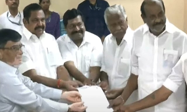 இந்த நிலையில், அ.தி.மு.க. சார்பில் வேட்பாளர்களாக அறிவிக்கப்பட்டுள்ள அ.தி.மு.க. வழக்கறிஞர் பிரிவுச் செயலாளர் இன்பதுரை, செங்கல்பட்டு கிழக்கு மாவட்ட அ.தி.மு.க. அவைத் தலைவர் தனபால் ஆகியோர், தங்களது வேட்பு மனுக்களை தமிழ்நாடு சட்டமன்றப் பேரவை அலுவலகத்தில் தாக்கல் செய்தனர். அதிமுகவினர் வேட்புமனுக்களை தாக்கல் செய்யும்போது அக்கட்சியின் பொதுச்செயலாளர் எடப்பாடி பழனிசாமியும் உடன் இருந்தார். மேலும், அதிமுக முன்னாள் அமைச்சர் செங்கோட்டையன், கேபி.முனுசாமி ஆகியோரும் உடன் இருந்தனர்.