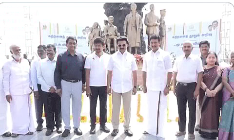 சென்னை மெரினா கடற்கரையில் பள்ளிக்கல்வித்துறை சார்பில் ரூ.1.43 கோடி மதிப்பில் அமைக்கப்பட்டுள்ள கல்விச்சிலையை முதலமைச்சர் மு.க.ஸ்டாலின் திறந்து வைத்தார். 'கற்றனைத்தூறும் அறிவு' என்ற பெயரில் அமைக்கப்பட்டுள்ள கல்விச்சிலையை திறந்துவைத்த முதலமைச்சர் கற்றனைத்தூறும் அறிவு! சாதனைச் சரித்திரம் நூலையும் வெளியிட்டார்.
