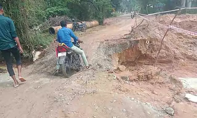 இதையடுத்து சம்பவ இடத்திற்கு வந்த நெடுஞ்சாலைத் துறையினர், அந்த சாலையின் மீது மீண்டும் மண்ணைக் கொட்டி வாகனம் சென்று வரும் வகையில் சாலையை அமைத்து கொடுத்தனர். இதனால் மீண்டும் நேற்று மாலை அந்த வழியாக போக்குவரத்து தொடங்கப்பட்டது.