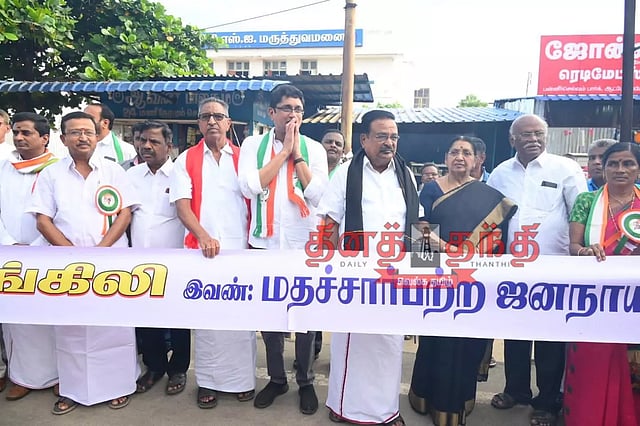 இந்திய கம்யூனிஸ்டு கட்சி மாவட்ட செயலாளர் பிரபாகரன். மார்க்சிஸ்ட் கம்யூனிஸ்டு கட்சியின் மாவட்ட செயலாளர் ரகுராமன், ம.தி.மு.க. மாவட்ட செயலாளர் முருகன், தமிழ்நாடு முஸ்லிம் முன்னேற்ற கழக பொறுப்பாளர் சித்திக், தமிழக வாழ்வுரிமை கட்சி மாவட்ட அமைப்பாளர் ஜெ.கோபு, இந்திய யூனியன் முஸ்லிம் லீக் நிர்வாகி ஆரிப், எஸ்.டி.பி.ஐ. பொறுப்பாளர் லுக்மான் மற்றும் திராவிடர் கழகம், தந்தை பெரியார் திராவிடர் கழகம் உள்பட பல்வேறு கட்சியினர் பங்கேற்றனர். இதையொட்டி பலத்த போலீஸ் பாதுகாப்பு போடப்பட்டு இருந்தது.