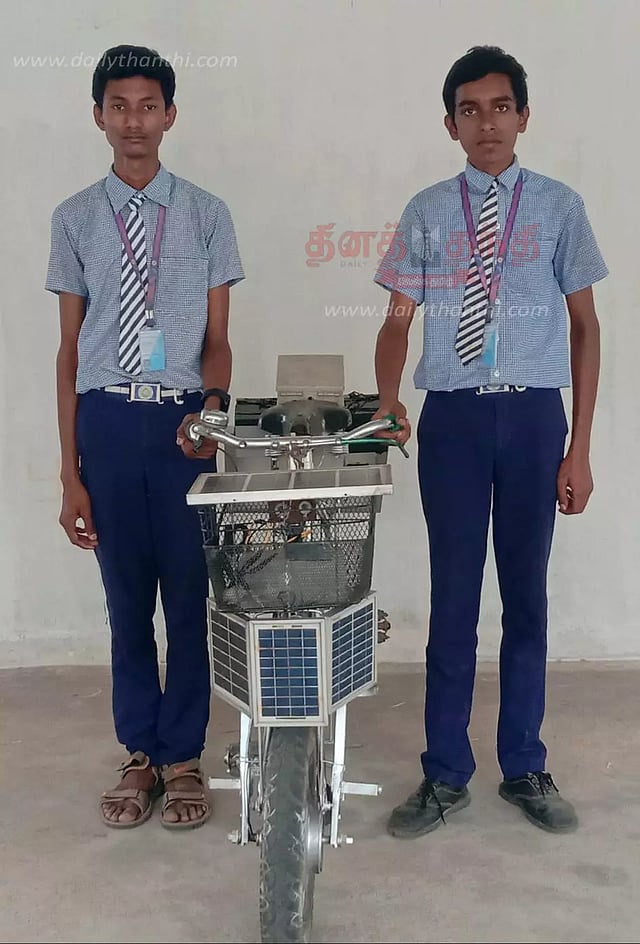 இந்த நிலையில் இந்த சைக்கிளை இணைந்து 2 பேரும் சோலாரில் இயங்கும் சைக்கிளாக உருவாக்கும் முயற்சியில் ஈடுபட்டனர். பகல் நேரத்தில் சூரிய ஒளியால் சோலார் தகடுகள் மூலமாகவும், இரவு நேரத்தில் சோலார் மின்கலம் (சேமிப்பு பேட்டரிகள்) மூலமாகவும் இந்த சோலார் சைக்கிளை இயக்கி செல்லும் வகையில் உருவாக்கினர்.
