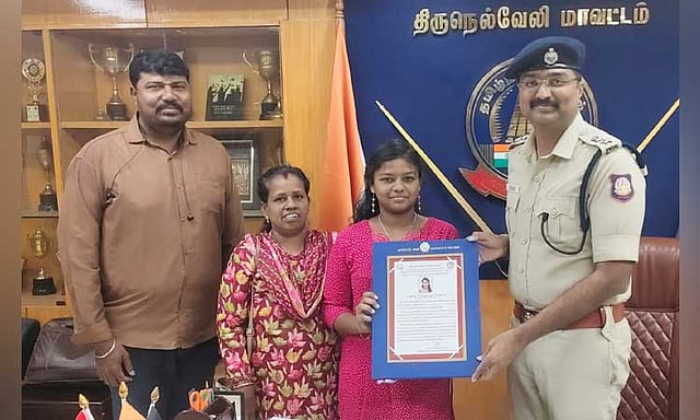 மேலும் இளம் வயதிலேயே சமூகப் பொறுப்புணர்வுடன் செயல்பட்டு வருவது பாராட்டத்தக்கது என்றும், அவரது சாதனை மற்ற மாணவர்களுக்கு ஒரு முன்னுதாரணமாக இருக்கும் என்றும் எஸ்.பி. தெரிவித்தார். இந்த நிகழ்வில் சமூக ஊடகப் பிரிவு அலுவலர் வெங்கட்ராமன் மற்றும் மாணவியின் தாயார் உடனிருந்தனர்.