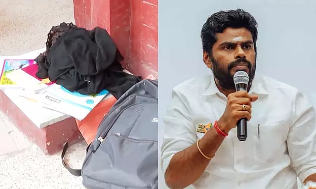 இந்த நிலையில் இந்த சம்பவத்துக்கு தமிழக பா.ஜ.க. லைவர் அண்ணாமலை கண்டனம் தெரிவித்துள்ளார். இது தொடர்பாக எக்ஸ் தளத்தில் வீடியோ ஒன்றை பகிர்ந்து பதிவிட்டுள்ள அவர், "தமிழக முதல்வர் ஸ்டாலின் பங்கேற்ற நிகழ்வில், "கருப்பு துப்பட்டா" அணிந்திருந்த மாணவிகள் அரங்கத்திற்குள் நுழைவதற்கு முன்பு அவற்றை அகற்றிவிட்டு வருமாறு கேட்டுக் கொள்ளப்பட்டுள்ளனர்.