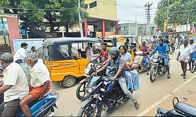 அதிக அளவில் இரு சக்கர வாகனங்கள் மற்றும் ஆட்டோக்கள் இந்த சாலையின் ஓரம் நிறுத்தி வைத்து இருப்பதால் தினந்தோறும் பள்ளிக்கு வரும் மாணவர்கள் பள்ளி வளாகத்திற்குள் செல்ல முடியாமல் கடும் சிரமத்திற்கு ஆளாகி உள்ளனர்.