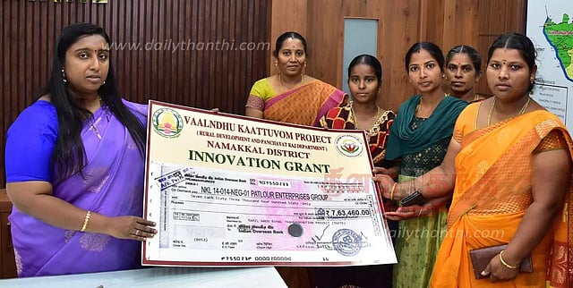 தொடர்ந்து வாழ்ந்து காட்டுவோம் திட்டத்தின் கீழ் திருச்செங்கோடு தாலுகா, பட்லூர் தொழிற்குழுவினருக்கு விவசாய கழிவுகளில் இருந்து தேநீர் கோப்பை (டீகப்) தயாரிக்கும் தொழில் தொடங்குவதற்கு மானிய விடுவிப்பு தொகையாக ரூ.7 லட்சத்து 63 ஆயிரம் மதிப்பிலான வங்கி வரைவோலையினை கலெக்டர் வழங்கினார். மேலும், கலெக்டரின் விருப்புரிமை நிதியின் கீழ் மாற்றுத்திறனாளி மங்கையர்கரசிக்கு ரூ.5 ஆயிரத்து 600 மதிப்பிலான தையல் எந்திரம் வழங்கினார்.