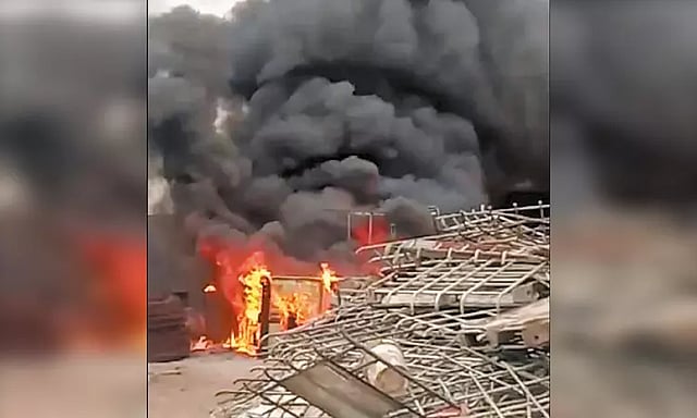 திருவள்ளூர் மாவட்டம், கும்மிடிப்பூண்டி சிப்காட் அடுத்த பைபாஸ் சாலையில் பெத்திக்குப்பம் பகுதியில் ரவி (வயது 56) என்பவருக்கு சொந்தமான ஆணி தொழிற்சாலையும், அதனையொட்டி பழைய இரும்பு பொருட்களுக்கான குடோனும் உள்ளது. இந்த குடோனில் பழைய இரும்பு தகடுகளை வெல்டிங் வேலை நடப்பது வழக்கம். இங்கு எண்ணெய் கசிவுடன் கூடிய பழைய ரப்பர் மற்றும் பழைய காரின் உதிரிபாகங்களும் குவிக்கப்பட்டு இருந்தது. நேற்று பிற்பகல் மேற்கண்ட குடோனில் இருந்த 2 தொழிலாளிகளும் சாப்பாட்டிற்கு சென்றனர்.