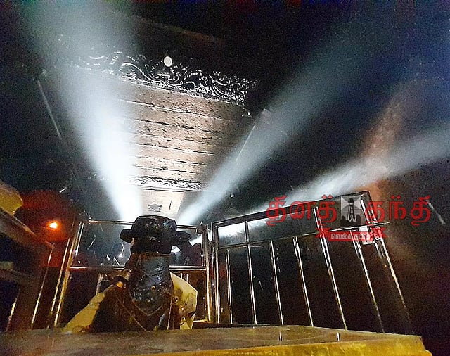 அதனைத் தொடர்ந்து செப்டம்பர் மாதத்தில் 19-ந் தேதி முதல் 30 -ந் தேதி வரை காலை 6.15 மணி முதல் 6.25 மணி வரை ஒரு முறையும் 6.40 மணி முதல் 6.50 மணி வரை 2-வது முறையும் சூரிய பூஜை நடைபெறும். இந்த சூரிய ஒளி கதிர்கள் மூலவர் மீது விழும் நிகழ்வு இந்த ஆண்டு நேற்று காலை முதல் தொடங்கியது. காலை 6.15 மணி முதல் 6.25 மணி வரை சூரிய ஒளி மேகமாக இருந்ததால் வர வில்லை. இதனைத் தொடர்ந்து 6.40 மணி முதல் 6.50 வரை சூரிய ஒளி துவாரங்கள் வழியே நந்தி பெருமானை கடந்து மூலஸ்தானத்திற்கு சென்ற படர்ந்தது. தொடர்ந்து சூரிய பூஜை நடந்தது.