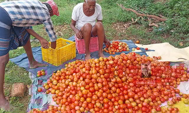 தற்போது வாட்டி வதைக்கும் கோடை வெயில் காரணமாக செடியிலேயே தக்காளி பழங்கள் காய்ந்து வருகின்றன. தக்காளி பிஞ்சு, பூக்கள் கருகி விடுகின்றன. இது தக்காளி விளைச்சலை பாதித்துள்ளது. இது குறித்து விவசாயிகள் கூறுகையில், ஒரு ஏக்கரில் தக்காளி சாகுபடி செய்ய ரூ. 40 ஆயிரம் முதல் ரூ.50 ஆயிரம் வரை செலவாகிறது. தற்போது நல்ல விளைச்சல் கிடைத்து வரும் நிலையில் அறுவடைக்கு தயாராக இருந்த பழங்கள் கடும் வெயிலின் காரணமாக செடிகளிலேயே காய்ந்து விட்டன. சிலர் தற்காலிகமாக நிழல் வலை அமைத்து பயிர்களை பாதுகாக்க முயற்சித்தாலும் முழுமையாக பலன் அளிக்கவில்லை. இதனால் கடன் சுமை அதிகரித்துள்ளது என தெரிவித்தனர்.
