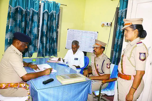 வேலூர் தெற்கு போலீஸ் நிலையத்தில் மாவட்ட போலீஸ் சூப்பிரண்டு மணிவண்ணன் நேற்று திடீர் ஆய்வு மேற்கொண்டார். அப்போது நிலுவையில் உள்ள வழக்குகளை விரைந்து முடிக்க வேண்டும். பொதுமக்களிடம் இருந்து பெறப்படும் மனுக்கள் குறித்து உடனடி விசாரணை செய்ய வேண்டும். பகல் நேரங்களில் ஏ.டி.எம்.மையம், வங்கி பகுதிகளில் ரோந்து பணி மேற்கொள்ள வேண்டும் என்றார். இந்த ஆய்வின்போது வேலூர் துணை போலீஸ் சூப்பிரண்டு திருநாவுக்கரசு, இன்ஸ்பெக்டர் பேபி ஆகியோர் உடன் இருந்தனர்.